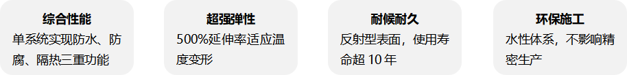 "工程实施后,厂房防水可靠性得到根本改善,夏季室内温度明显降低,同时延长了钢结构使用寿命,为客户创造了显著的综合效益。"
